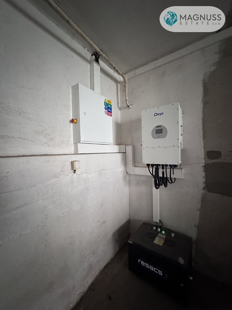 Dům je zateplený a díky fotovoltaické elektrárně s bateriovým úložištěm nabízí velmi nízké měsíční provozní náklady.