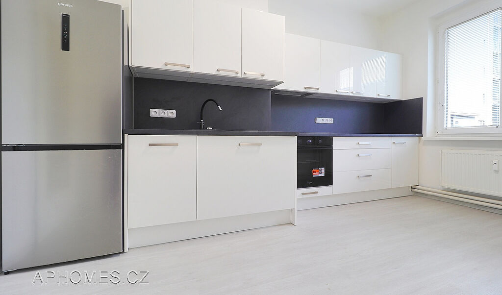 Součástí vybavení bytu je zcela nová moderní kuchyňská linka (vestavěná trouba, digestoř, sklokeramická varná deska, myčka nádobí i lednice.