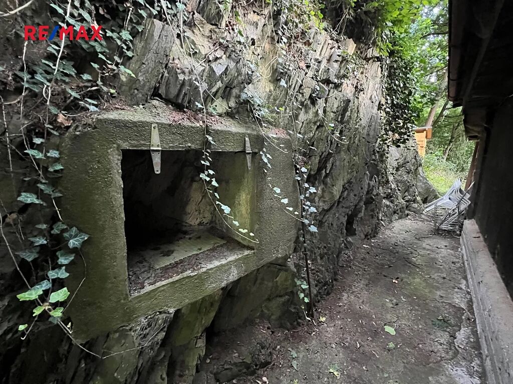Nechybí ohniště s lavičkami, ani malá dílna, kůlna, dřevník... Zajímavostí je chladnička ve skále za chatou.
