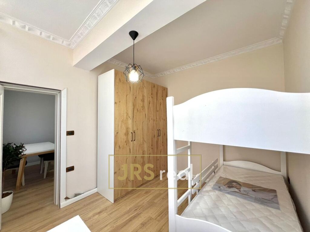 Ve výhradním zastoupení majitele nabízíme k prodeji vybavený byt 2+1, který se nachází přímořském městě Durrës v Albánii. Byt o velikosti 76 m² je situován ve 2. patře bytového domu bez výtahu. Při vstupu do bytu Vás přivítá chodba, ze které je vlevo vchod do koupelny vybavené umyvadlem, zrcadlem, bidetem, WC a sprchovým koutem. Naproti vchodovým dveřím je kuchyně s kuchyňskou linkou vybavenou lednicí, sklokeramickou varnou deskou, vestavěnou troubou a digestoří. Součástí kuchyně je také malý jídelní stůl se dvěma židlemi a vstup na balkón, který poskytuje příjemné místo pro ranní kávu či menší posezení. Vpravo od vchodových dveří se nachází prostorný obývací pokoj, který je vybaven pohodlnou sedačkou, konferenčními stolky, TV stolkem a jídelním stolem se čtyřmi židlemi. Z obývacího pokoje vedou dveře do dalších dvou místností – pokoje a ložnice. Pokoj je vybaven šatní skříní, dvěma patrovými postelemi a komodou, což z něj činí ideální prostor pro děti nebo hosty. Ložnice disponuje dvoulůžkovou postelí, toaletním stolkem, zrcadlem a velkou šatní skříní. Z ložnice je přímý vstup na balkon, kam proniká dostatek denního světla a nabízí prostor k odpočinku. Díky své dispozici a lokalitě je byt vhodný jak pro rodinné bydlení, tak i jako zajímavá investiční příležitost. V případě zájmu o tuto nemovitost kontaktujte makléře.