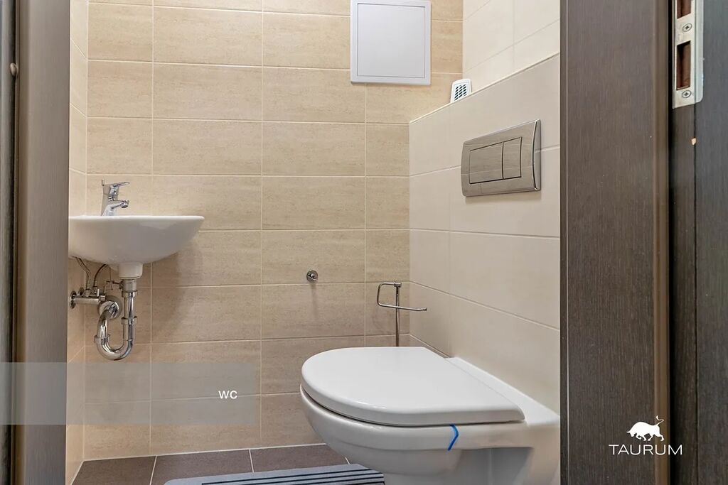 Byt má hezkou dispozici prostornou chodbu, dva samostatné pokoje, velikou koupelnu s přirozeným větráním díky velikému oknu, samostatné WC s umyvadlem a obývací pokoj s kuchyňským koutem, ze kterého je vstup na balkon.
