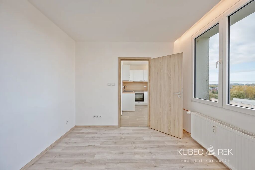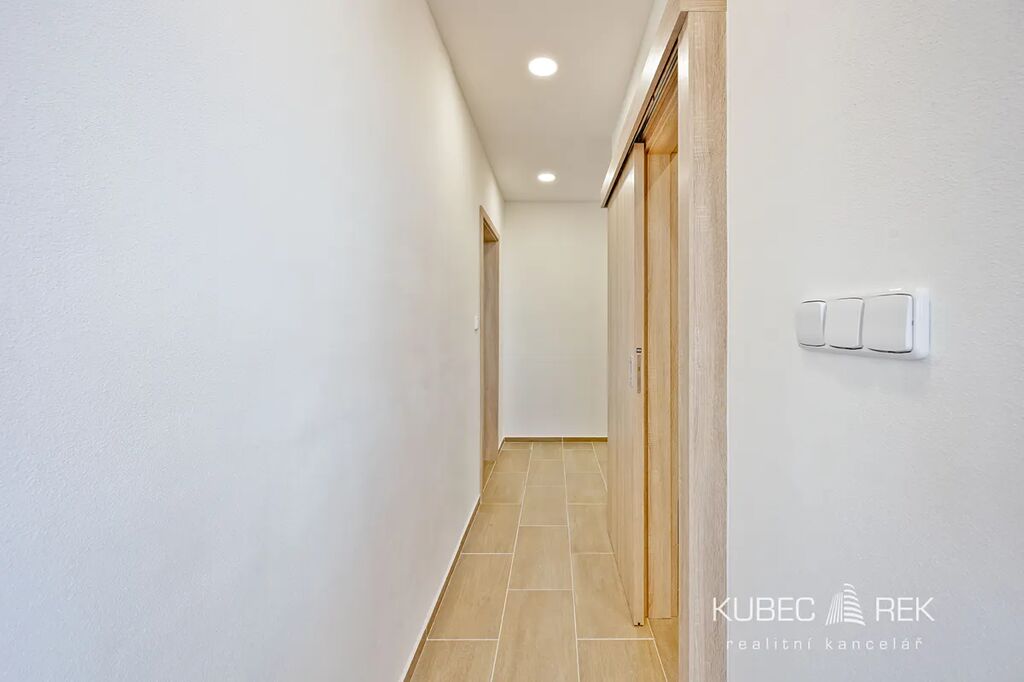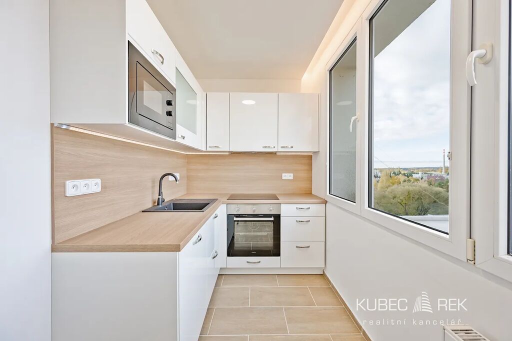 Byt prošel změnou dispozice na současné 2+kk o podlahové ploše 43 m². Samozřejmostí je důkladná rekonstrukce. Nové jsou rozvody elektřiny i vody, veškeré podlahy, sádrokartonové podhledy s LED osvětlením, nové interiérové dveře včetně obložkových zárubní a samozřejmě také kompletní koupelna i kuchyně včetně vestavných spotřebičů jako je myčka, indukční deska, elektrická trouba, mikrovlnná trouba i digestoř.