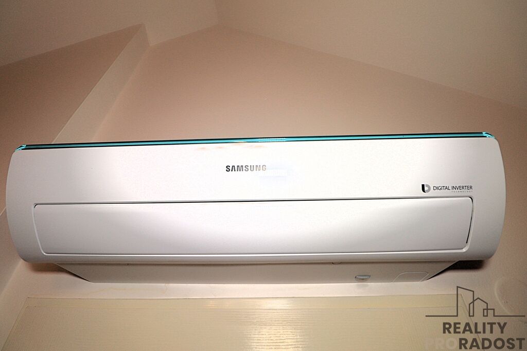 Horní patro (mezonet): Přístupné po schodišti, kde se nachází velkorysá otevřená galerie sloužící jako klidová zóna. Tvoří jej hlavní obytný prostor s kuchyňským koutem, který je vybaven vestavěnými spotřebiči (varná deska, trouba, digestoř, myčka). Dále je zde koupelna s vanou, umyvadlem a prostorem na pračku, a toaleta. Pro maximální komfort je byt vybaven klimatizační jednotkou, která zajistí příjemnou teplotu i v horkých letních dnech.