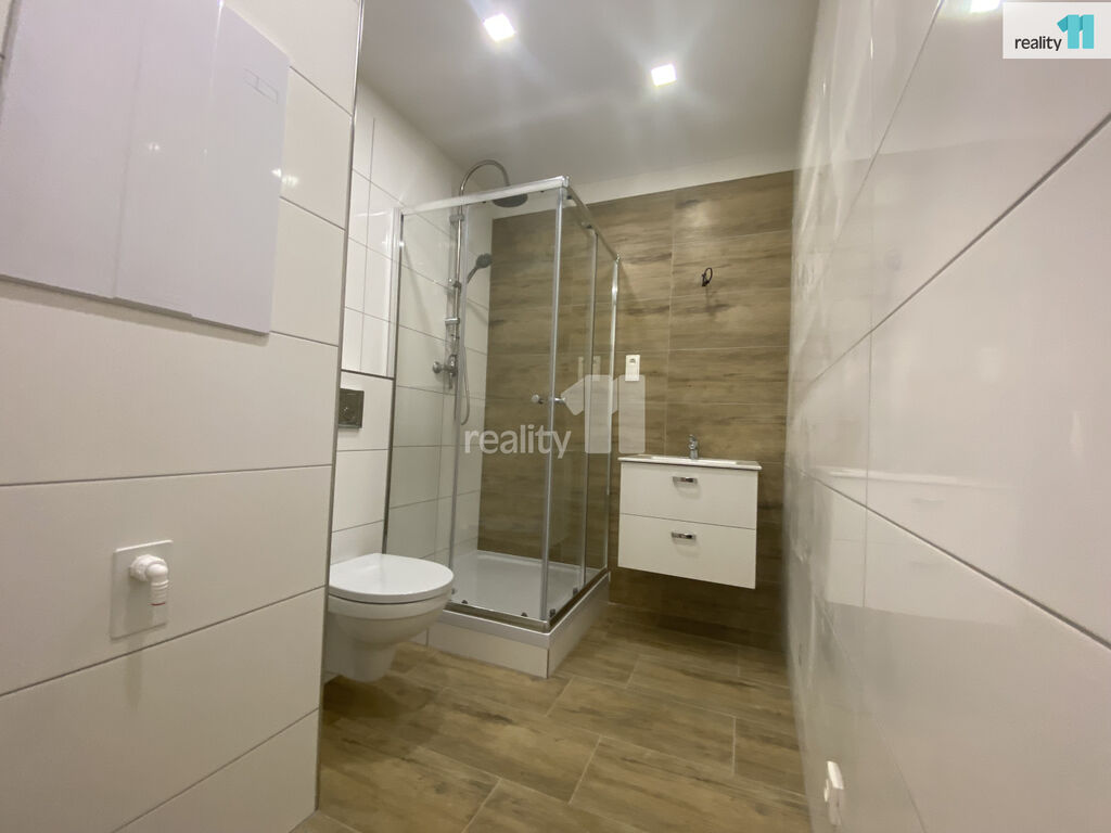 -zvětšená zděná koupelna se sprchovým koutem a závěsné WC