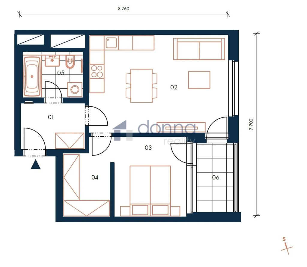 Nabízíme k pronájmu velice pěkný byt 2+kk, o ploše 54m2 + lodžie, ve 2. podlaží v novostavbě projektu Nuselský pivovar, ulice Mužíkova, Praha 4 - Nusle.