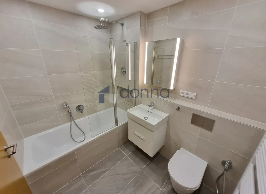 Byt je vybaven zcela novou kuchyňskou linkou se spotřebiči WHIRLPOOL (lednice s mrazákem, myčka, mikrovlnná trouba, indukční varná deska a digestoř), moderními designovými LED svítidly v celém bytě.