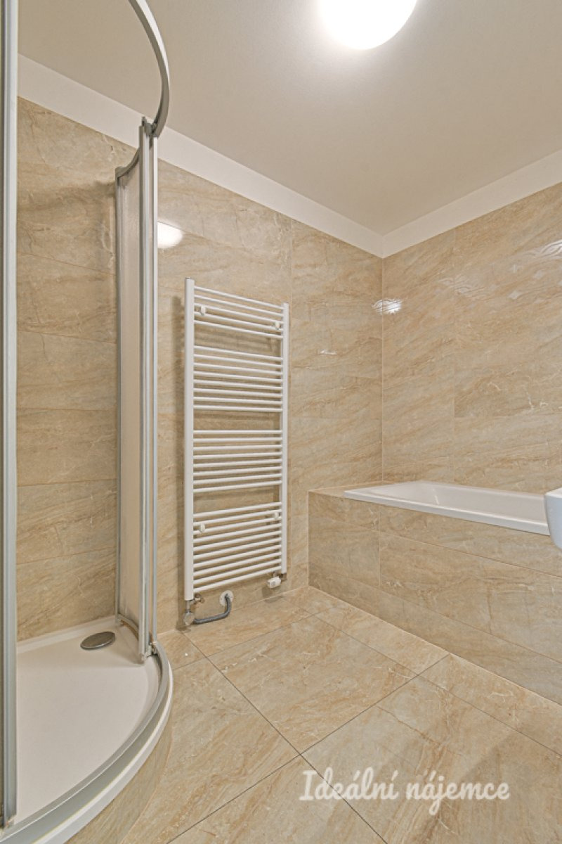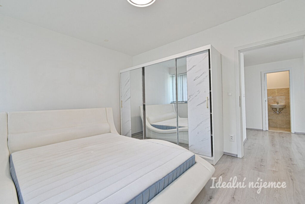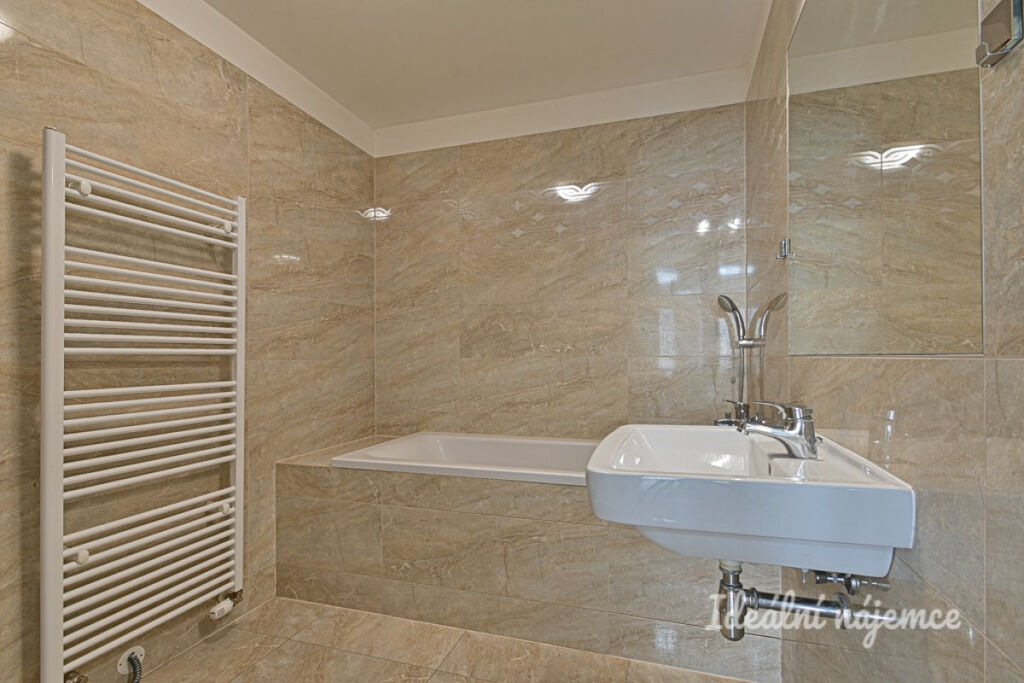 Ložnice je zařízena manželskou postelí. Koupelna nabídne pohodlí jak milovníkům sprch, tak i van – máte na výběr obojí. Nechybí umyvadlo a úložné prostory, toaleta je pak řešena samostatně.