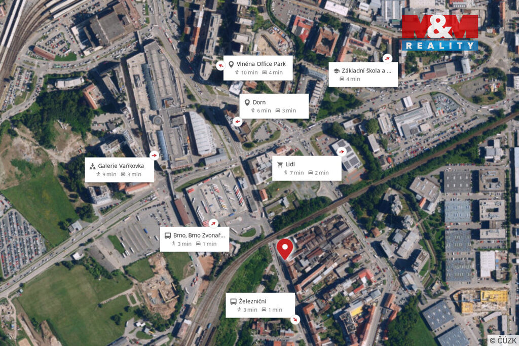 Byt vyniká perfektní dostupností – pěší vzdáleností od centra, Zvonařky i Vaňkovky. Navíc se nachází v bezprostřední blízkosti nového brněnského nádraží Europoint Brno, který z této lokality vytvoří jednu z nejlukrativnějších oblastí města.