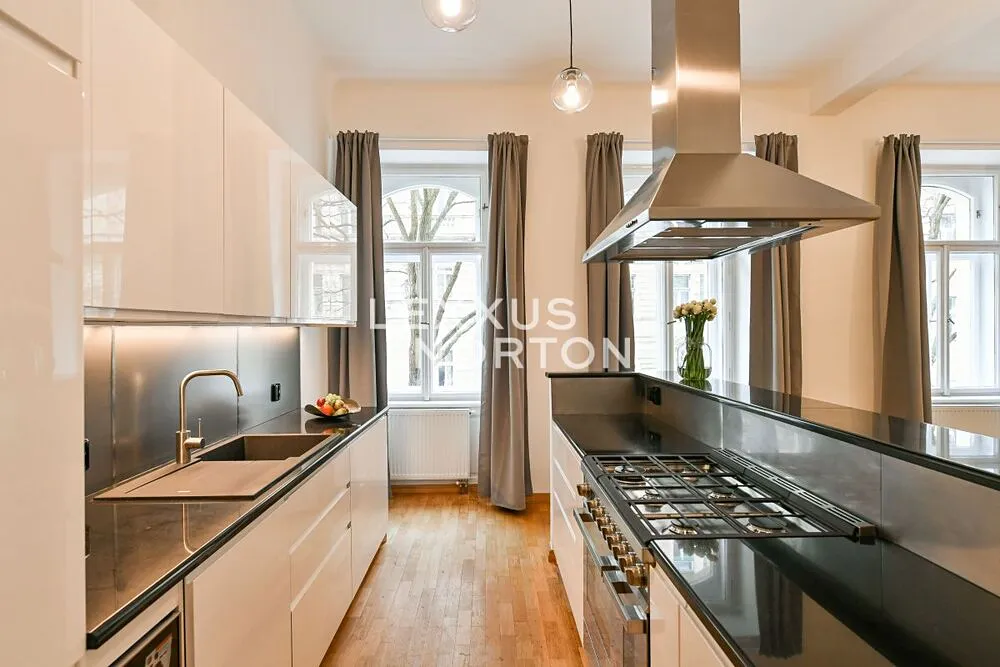 K pronájmu nabízíme stylový mezonet 3+kk s balkonem o rozloze 118 m², rozprostírající se v přízemí a prvním patře elegantní budovy s výtahem. Byt se nachází v jedné z nejžádanějších částí Prahy 2 – na Vinohradech, které vynikají klidnou atmosférou, množstvím zeleně, výbornou dopravní dostupností i kompletní občanskou vybaveností v bezprostředním okolí.