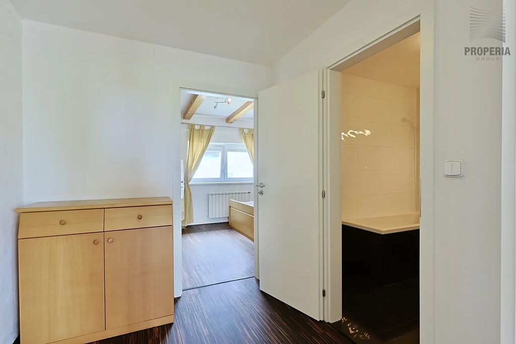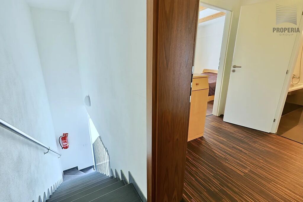 Byt je součástí dvouúrovňové jednotky – aktuálně slouží jako horní patro, a proto zde není kuchyňská linka, ale přípojky pro elektřinu, vodu a odpad jsou připraveny. V případě zájmu lze byt snadno upravit k plnohodnotnému samostatnému bydlení.