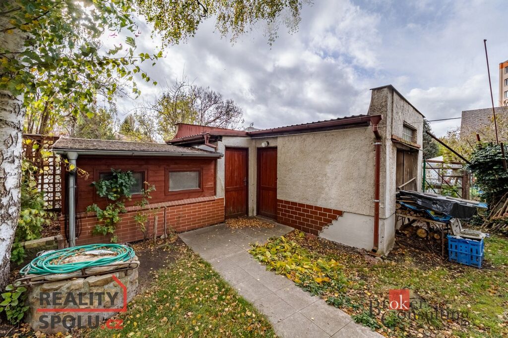 Součástí pozemku je samostatná garáž s dílnou, na kterou navazuje zahradní domek vhodný pro uskladnění nářadí či drobnou dílenskou činnost.
