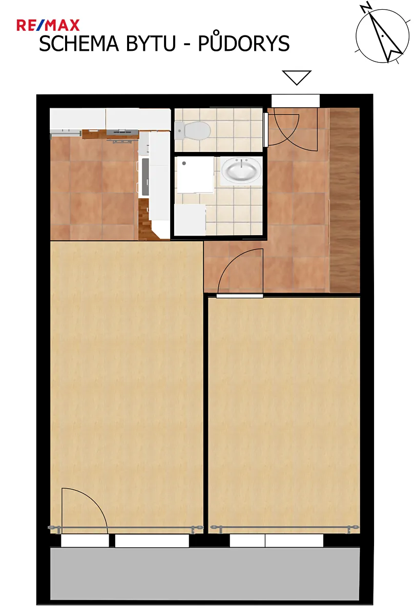 K bytu patří úložná místnost o velikosti 1m2 , která se nachází na patře, vedle bytu.