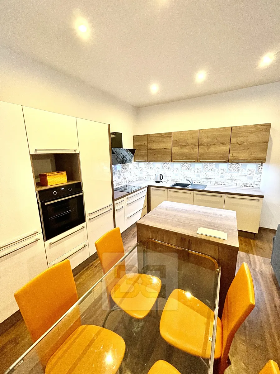 Volný od 1/12/2025. Exklusivně Vám nabízíme pronájem nového zrekonstruovaného bytu 3+kk situovaného v přízemí cihlového domu ve vynikající lokalitě Prahy 8 – Kobylisy, ul. Na pěšinách. Bytová jednotka má celkovou plochu 77m2 a právě prošla kompletní rekonstrukcí. Sestává se z prostorné předsíně, dětského pokoje/pracovny (vybavena komodami a pracovním stolem), ložnice (vybavena vestavěnou skříní, komodou a manželskou postelí s matrací), prostorné koupelny s wc, bidetem, velké rohové vany a dvěma umyvadly a z velkého obývacího pokoje s velmi kvalitní kuchyňskou linkou s vestavěnými spotřebiči (myčka Bosch, trouba Gorenje, lednice s mrazákem Gorenje), jež je vybaven jídelním stolem se 4 židlemi - na movitých věcech se lze dohodnout. Každá z místností obsahuje ethernetový výstup (internet zajišťuje O2 - VDSL). Vstup do domu je přes snímač otisku prstu. Plánek rádi pošleme na vyžádání. Byt bude vymalován (bílou barvou).
