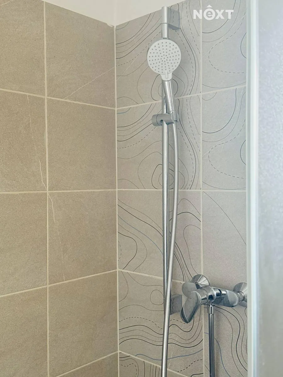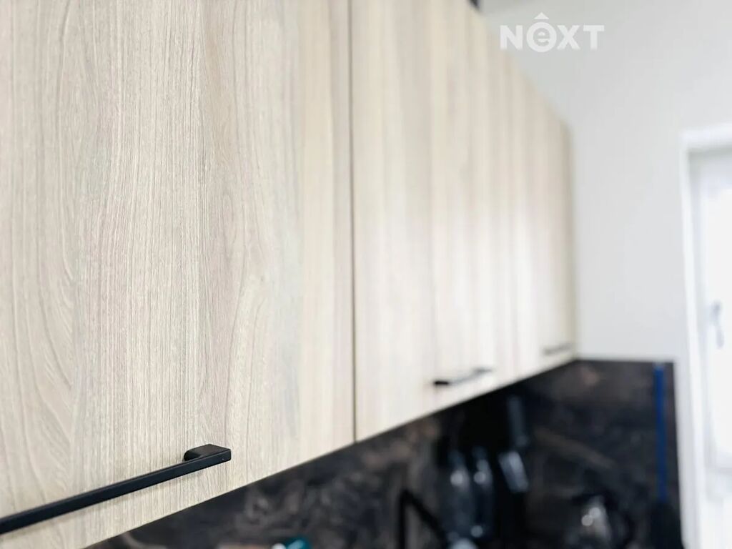 Byt vás přivítá promyšlenou dispozicí a čistým designem. Ze vstupní chodby o velikosti 2,3 m² se vstupuje do koupelny se sprchovým koutem, toaletou a pračkou o výměře 3,5 m². Hlavní obytný prostor s kuchyňským koutem o velikosti 16,5 m² působí vzdušně a svěže – kuchyňská linka je vybavena vestavěnými spotřebiči, lednicí, mikrovlnnou troubou i elegantním černým dřezem.