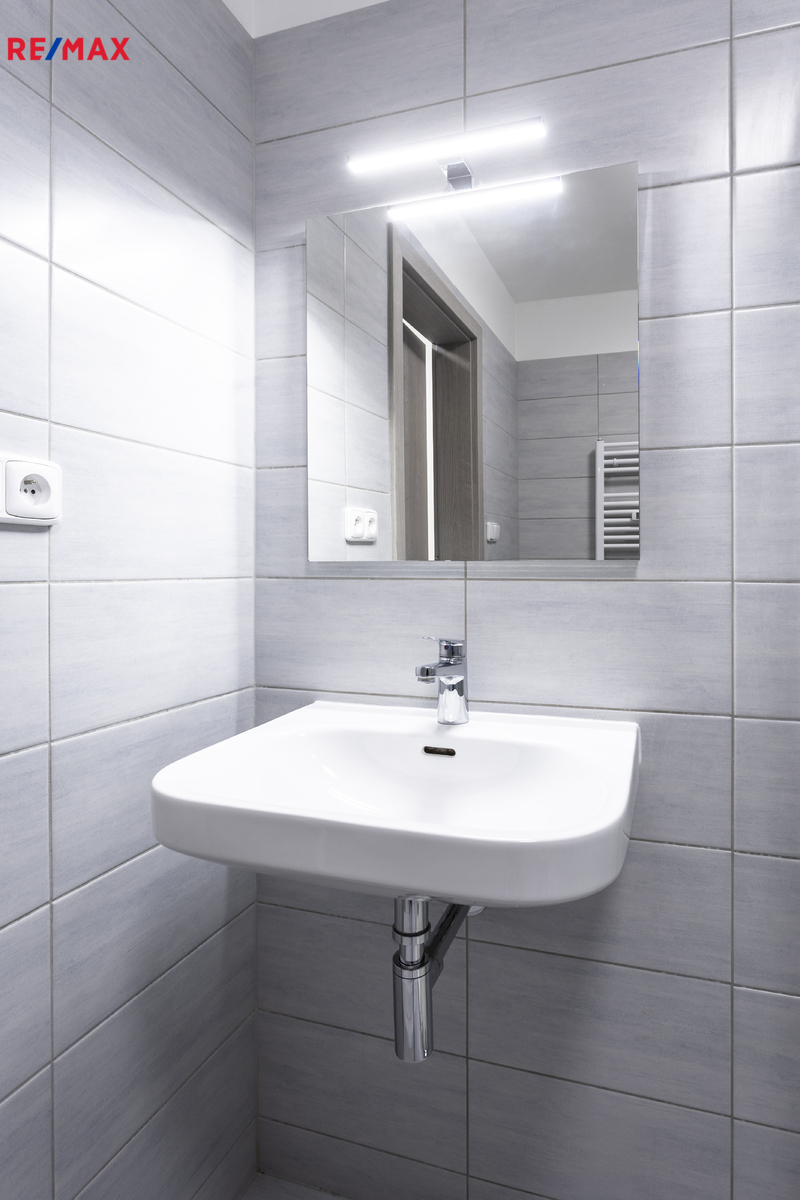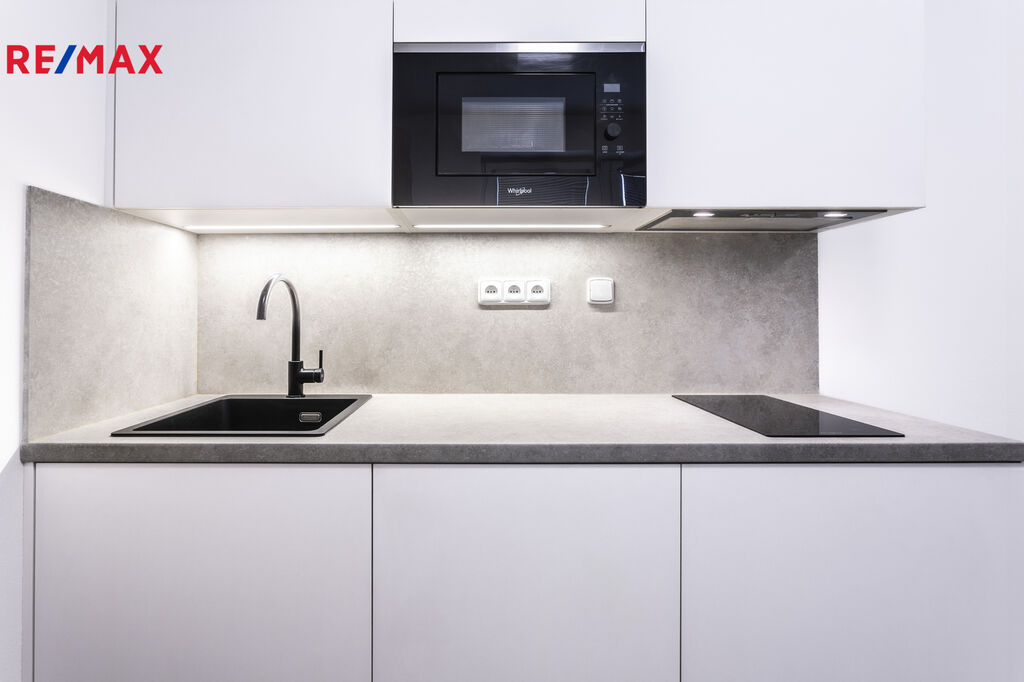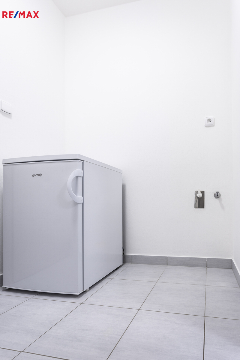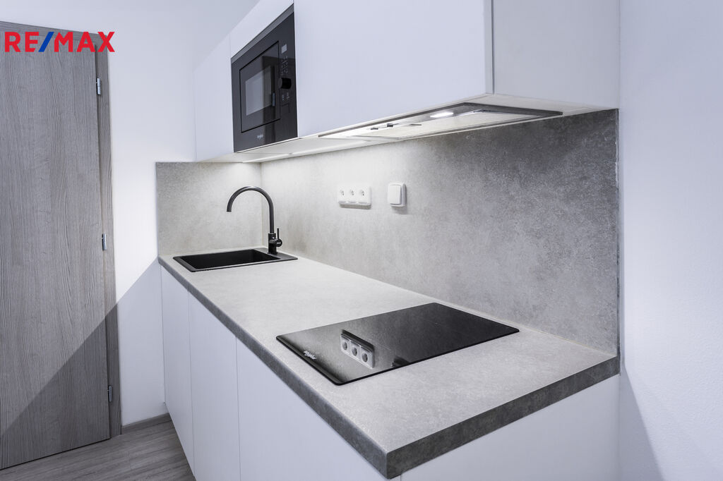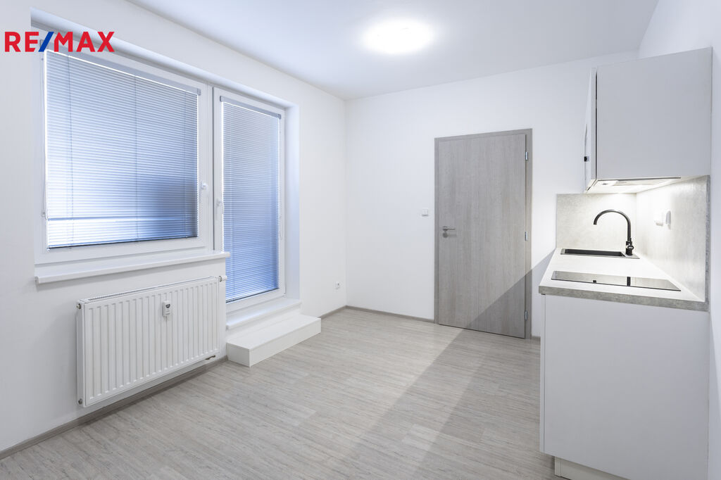 moderní dispozice zahrnuje prostorný světlý pokoj s kuchyňskou linkou vč. elektrospotřebičů - indukční deska, mikrovlnná trouba, lednička. Koupelna se sprchovým koutem a WC. Technická místnost s vestavěnou skříní a možnosti připojení pračky.