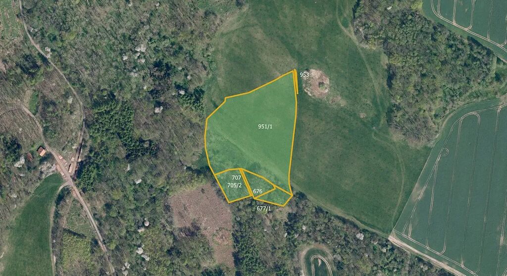 Trvalý travní porost: 21 539 m2 (parcely č. 953, 676, 707, 951/1)