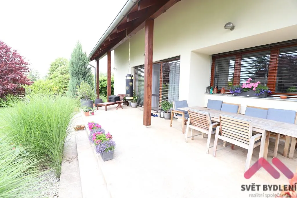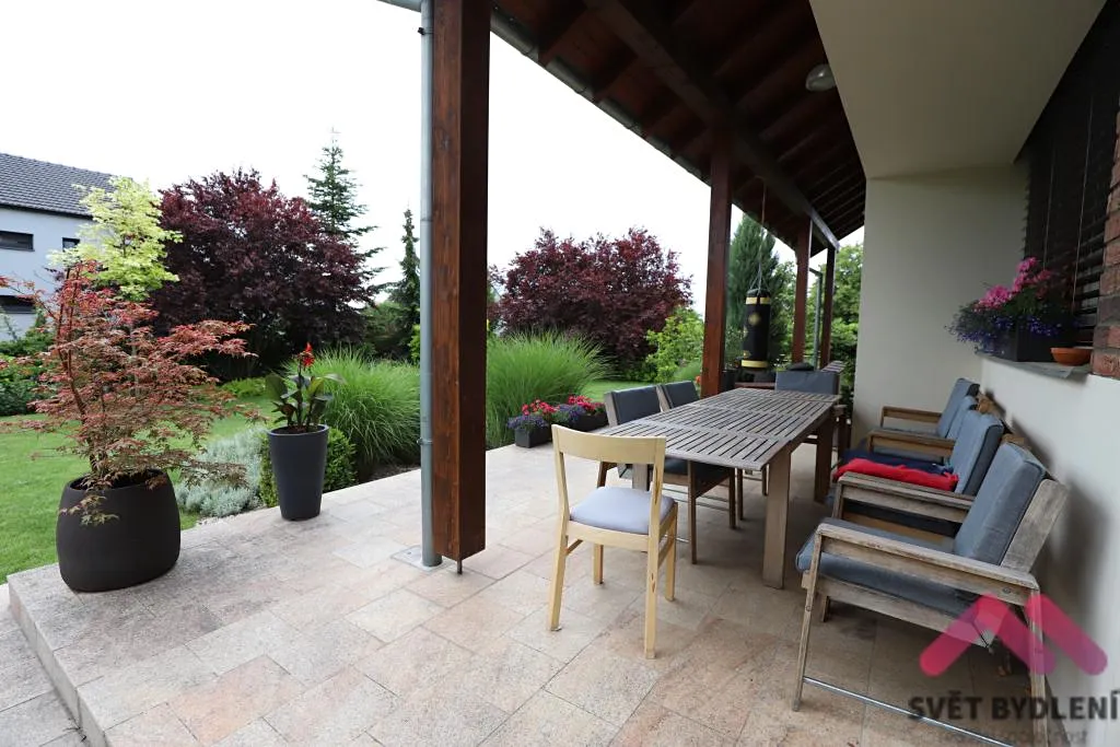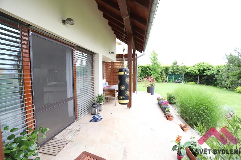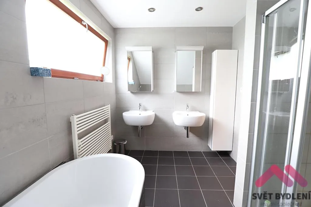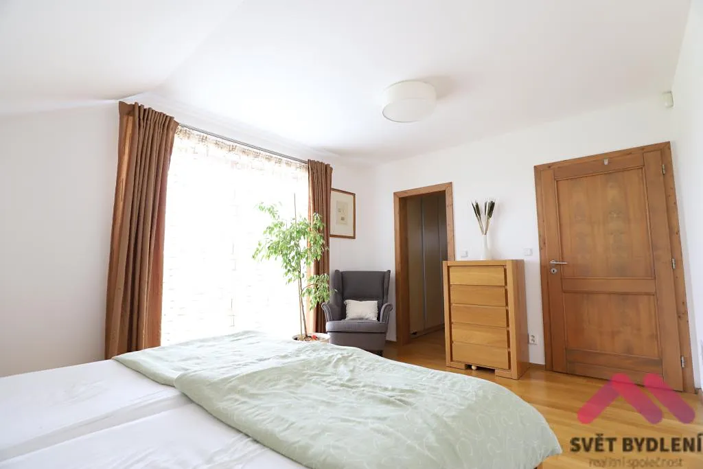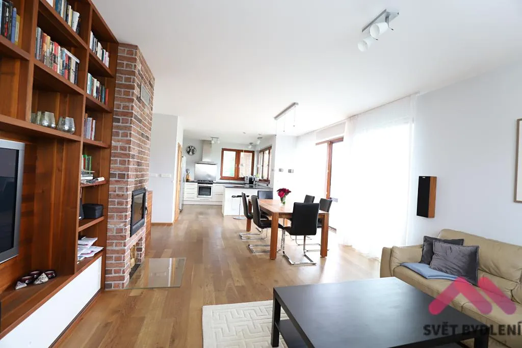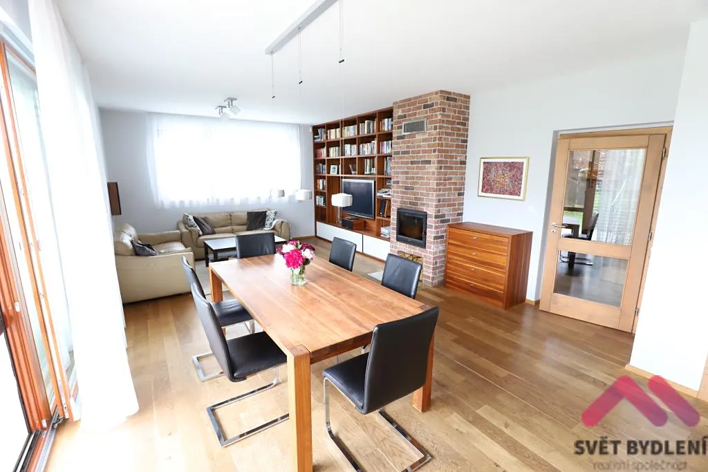 pronájem luxusního RD 5+kk, 221m2, zahrada 1000m2, kompletně moderně zařízeno, P-10 Dubeč Ul: Kolocova. Ve výhradním zastoupení majitele nabízíme k pronájmu novostavbu RD o celkové užitné ploše 221m2, který se nachází v klidné ulici městské části Dubeč. Oproti fotografiím RD nebude vybaven tímto nábytkem (sedací souprava v obýváku, sedačka v pracovně). Dále je k dispozici kuchyňská linka se spotřebiči - (sporák s horkovzdušnou troubou myčka, lednička). Dispozičně je dům řešen tak, že v přízemí se nachází obývací pokoj s kuchyní, pracovna, koupelna se sprchovým koutem s prostorem na pračku a sušičku (pračka a sušička není součástí vybavení), technická místnost s plynovým kotlem a garáž. V 1. patře se nachází dva dětské pokoje. ložnice s prostornou šatnou, velká koupelna s vanou i sprchovým koutem, komora a samostané WC. Vytápění - komfortní podlahové. V celém domě jsou předokenní rolety s elektrickým ovládáním. RD disponuje zabezpečovacím zařízením s možností napojení na PCO. Na prostorné zahradě o výměře cca. 1.000m2 se nachází okrasné dřeviny a zahradní domek. Zahrada je vybavena automatickým závlahovým systémem. V místě je veškerá občanská vybavenost (škola, školka, nákupní možnosti apod..) Dům bude k dispozici od 1.11!