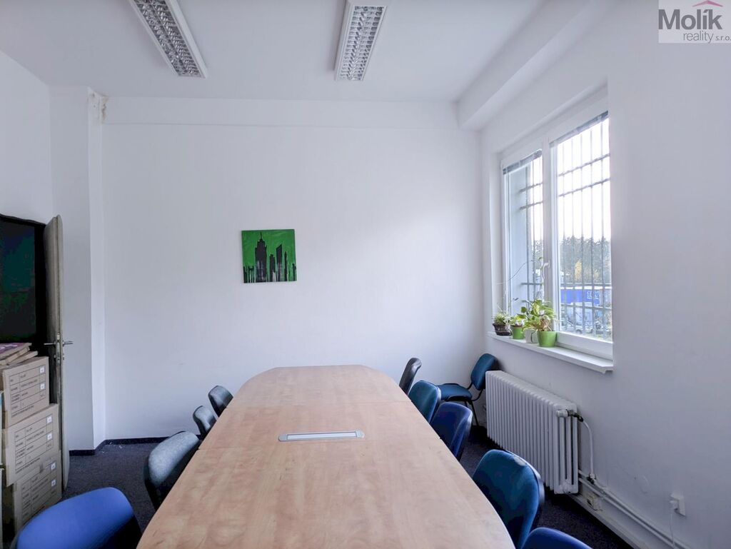 Kancelář se nachází v 1.patře ( 2.NP) a má k dispozici 2 x WC na patře (na klíč) a společnou kuchyni. Volná do týdne.