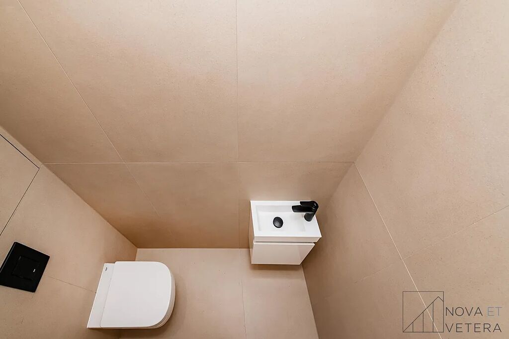 Byt prošel kompletní rekonstrukcí – nové rozvody, podlahy, obklady a koupelna se sprchovým koutem (sanita Grohe). Součástí je nová kuchyňská linka s vestavěnými spotřebiči značky Gorenje (lednice s mrazákem, trouba, varná deska, myčka, digestoř). Dispozici tvoří obývací pokoj s kuchyňským koutem, samostatná ložnice se vstupem na lodžii, prostorná šatna, koupelna a samostatná toaleta. K dispozici je také technická místnost s přípojkou na pračku.