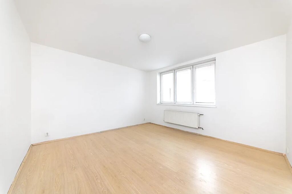 Srdcem bytu je prostorná a světlá obytná místnost s moderním kuchyňským koutem, která přirozeně propojuje prostor pro vaření, stolování i odpočinek. Z ní je přístup do druhého pokoje, který lze využít jako ložnici či pracovnu. Koupelna s toaletou působí čistě a funkčně, komora pak poskytuje ideální zázemí pro skladování potravin nebo domácích potřeb.