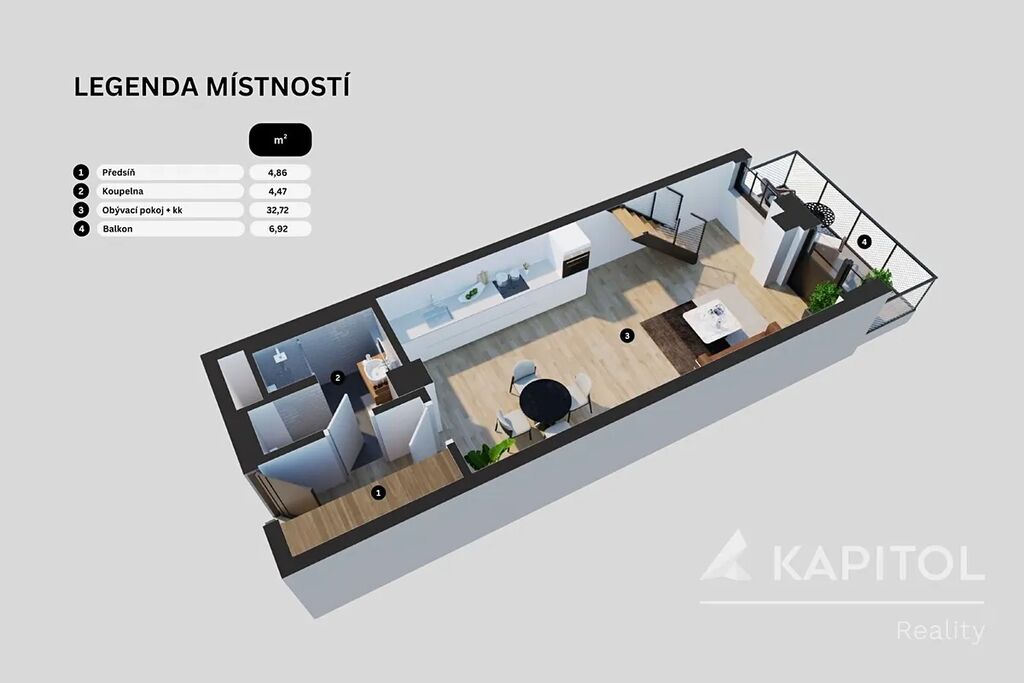Balkon o velikosti 6,92 m²