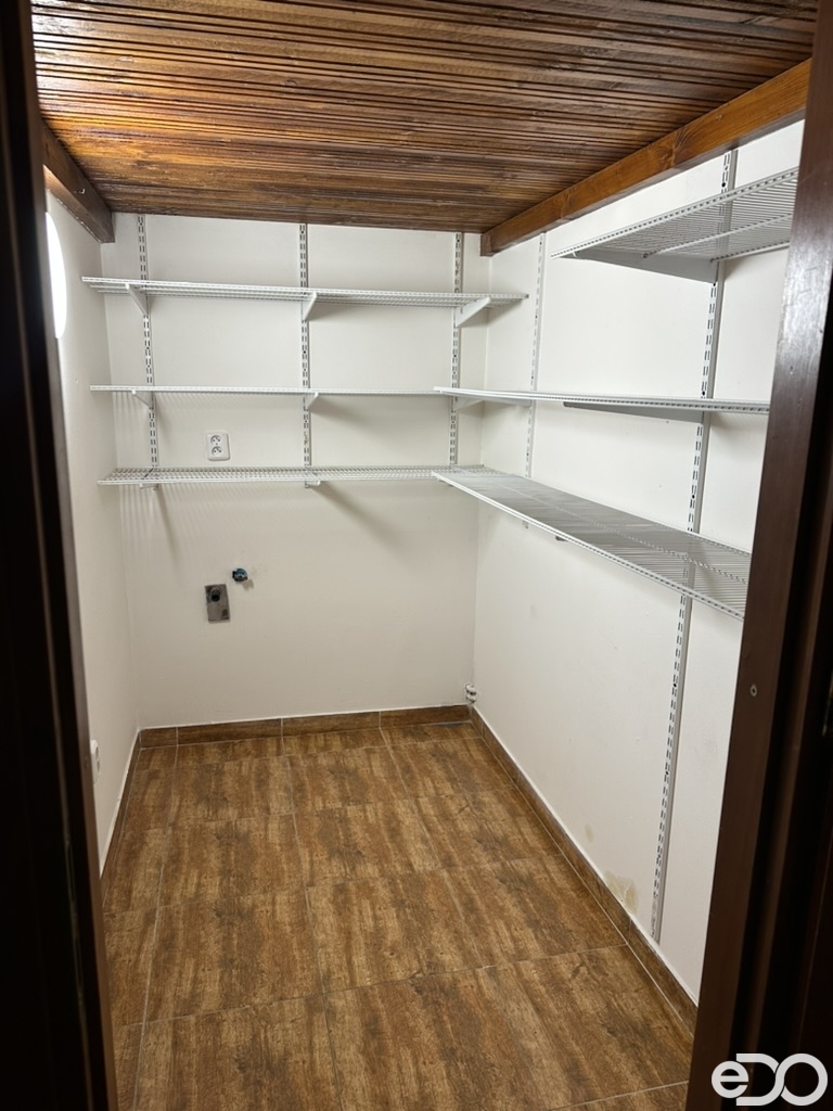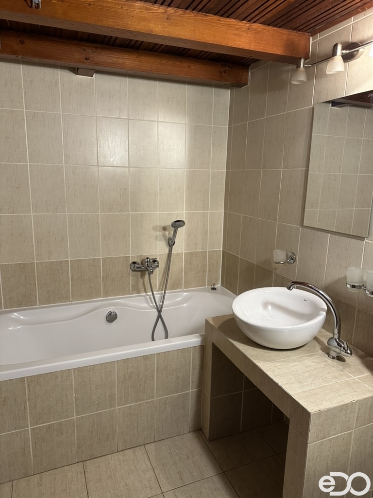 Byt má velmi prakticky řešenou dispozici – ze společné předsíně pro dva byty vstoupíte do vlastní chodby, z níž je přístup do prostorné šatny. Dále se nachází koupelna s vanou, kuchyně s jídelním koutem a dva samostatné pokoje, oba se zajímavě řešeným vyvýšeným dřevěným spaním, které poskytuje více prostoru pro bydlení i úložné plochy.