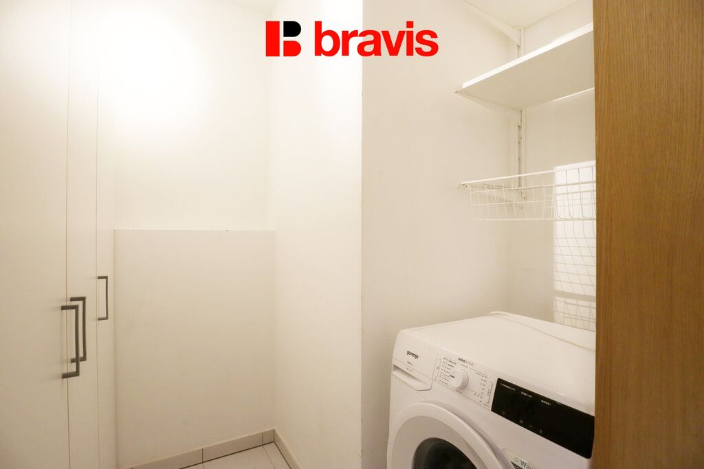 Další výhodou je technická místnost, která je vybavena pračkou a úložnými prostory.