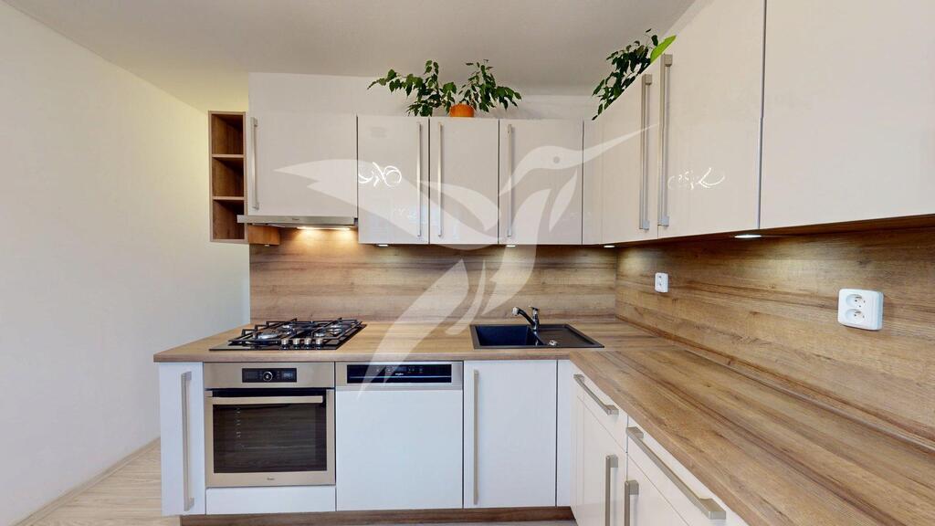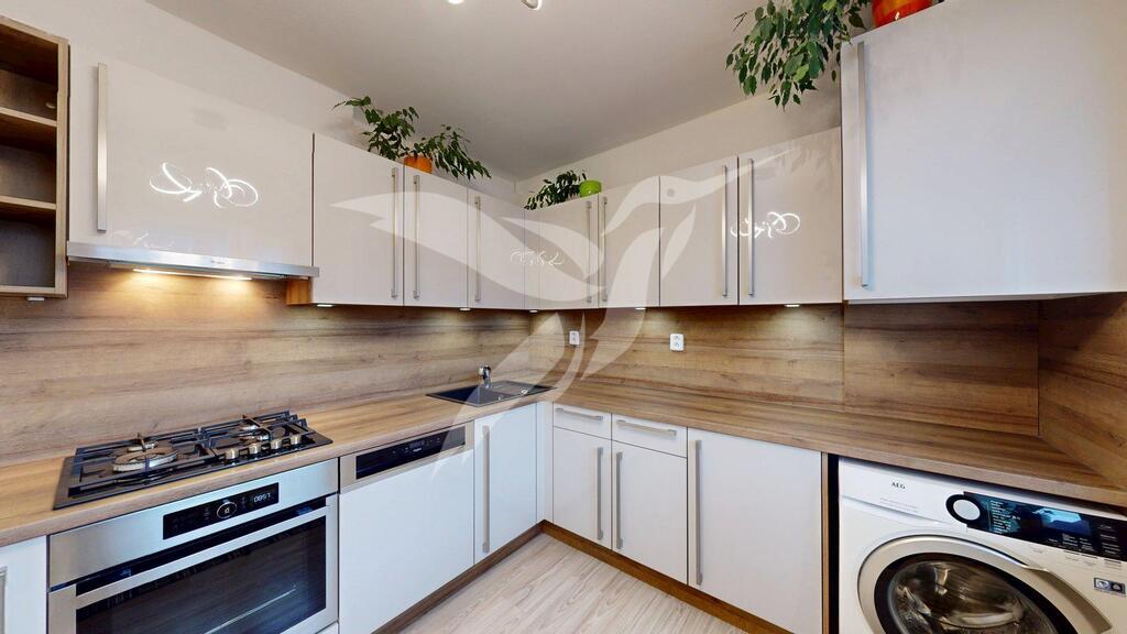 Byt se nabízí zařízený viz foto, případně na domluvě, součástí je kuchyňská linka se spotřebiči (lednice s mrazákem, plynová deska, vestav. trouba, vestav. myčka, digestoř a pračka). Teplo je zajištěno dálkovými dodávkami, teplá voda je zajištěna el. bojlerem. Energie se přepisují na nájemce.
