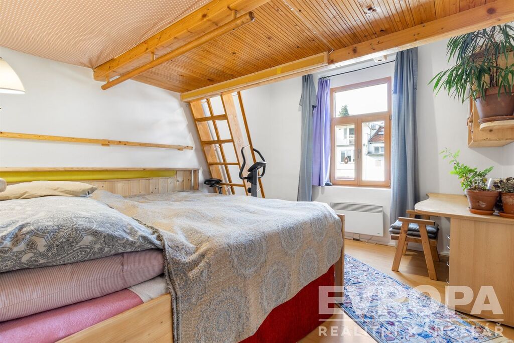 Byt byl původně řešen jako 2+kk, ale v rámci rekonstrukce byl upraven na praktické 2+1. Z předsíně je vstup do všech místností, nyní nabízí dvě samostatné obytné místnosti, v každé je vestavěné patro na spaní (tyto patra zvětšují užitný prostor bytu) a oddělenou vnitřní kuchyň, což zajišťuje větší soukromí a flexibilitu využití prostoru, pro bydlení rodiny a také pro případné spolubydlení. Dále se zde nachází koupelna s vanou a samostatné wc. Byt je ve velmi udržovaném stavu, před časem prošel kompletní rekonstrukcí, bude prázdný a bez vybavení (nábytek na fotografiích je předchozího nájemce). Vytápění je zajištěno elektrickými přímotopy s vlastní regulací, ohřev vody elektrickým bojlerem. Na podlahách parkety a dlažba, okna dřevěná kanadská borovice, 2xvestavěná skříň.