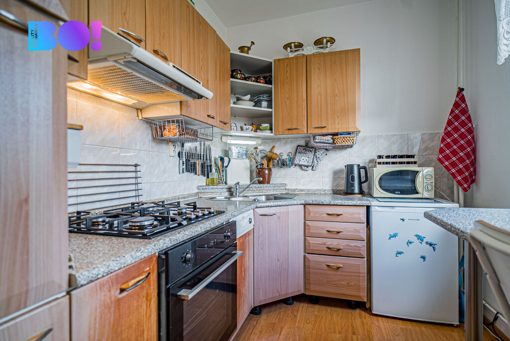 Jednotka disponuje dvěma neprůchozími pokoji, obývacím pokojem se zasklenou lodžií, kuchyní, chodbou a koupenou s WC, která prošla rekonstrukcí.