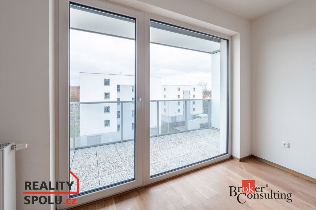 Dispozice bytu je 3KK o podlahové ploše 67,75 m2. Bytová jednotka disponuje 2 pokoji a obývacím pokojem s prostorným kuchyňským koutem. Kuchyň je vybavena prostornou potravinovou skříní a vestavěnými spotřebiči (myčka, varná deska, digestoř, lednička s mrazákem, trouba a mikrovlná trouba). Z obývacího pokoje je vstup na jihozápadně orientovaný balkón. Koupelna je vybavená skříňkami se zrcadlem, žebříčkem na ručníky a přípojkou pro pračku a sušičku. Součástí nájmu bytové jednotky parkovací stání a sklepní kóje.