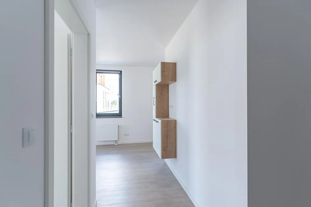 V bytě je moderní kuchyňská linka s indukční deskou, pečící trouba, digestoř a prostor pro myčku. Koupelna je vybavena sprchovým koutem. Okna v kuchyni jsou vybavena žaluziemi den/noc. Byt se nachází ve 2. patře s výtahem. Příslušenství bytu tvoří sklepní kóje 2 m2. K dispozici je v domě kolárna.