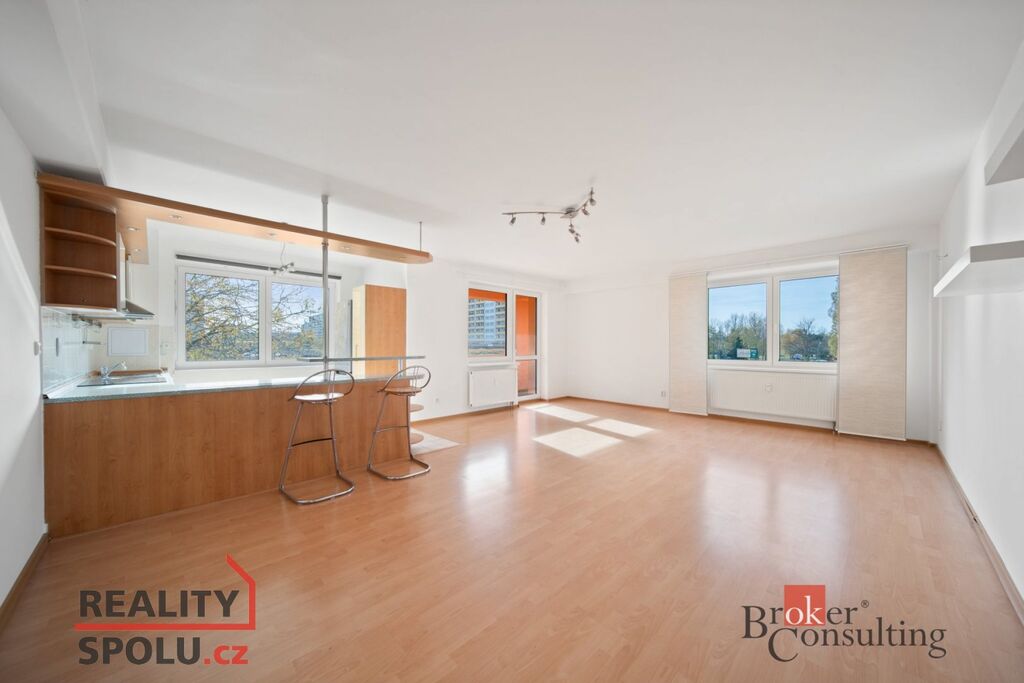 Interiér bytu je v původním, ale velmi dobře udržovaném stavu – stačí vymalovat a můžete bydlet. Dispozice nabízí vše, co rodina ocení: prostorný obývací pokoj s kuchyňským koutem a jídelní částí (43 m²), dvě neprůchozí ložnice, koupelnu, samostatné WC, šatnu a prostornou vstupní chodbu. K bytu náleží i praktický úložný box na přilehlé chodbě. (7 m²).
