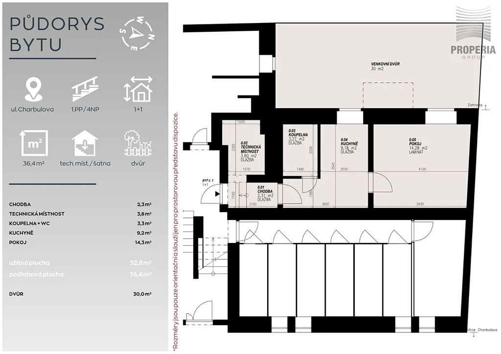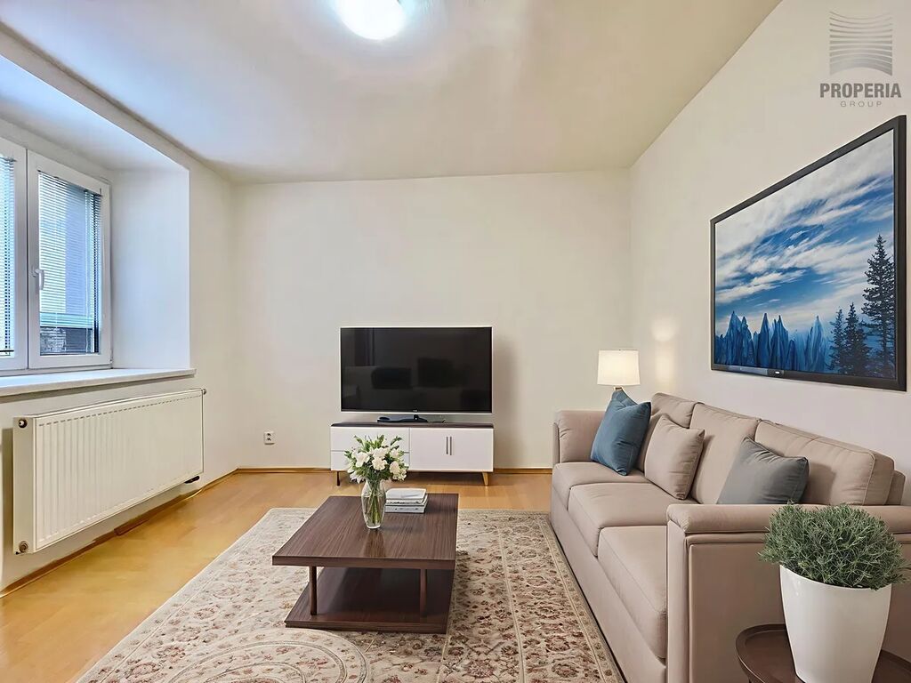 Díky tomu nabízí byt moderní standard a pohodlí, na které se můžete ihned spolehnout. Má praktické dispoziční řešení – centrální chodba zajišťuje samostatné vstupy do koupelny a přes průchozí kuchyni do pokoje. Jistě oceníte také samostatnou místnost, která může sloužit třeba jako šatník. K bytu náleží dvůr ve vnitrobloku o velikosti 30 m².