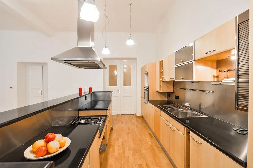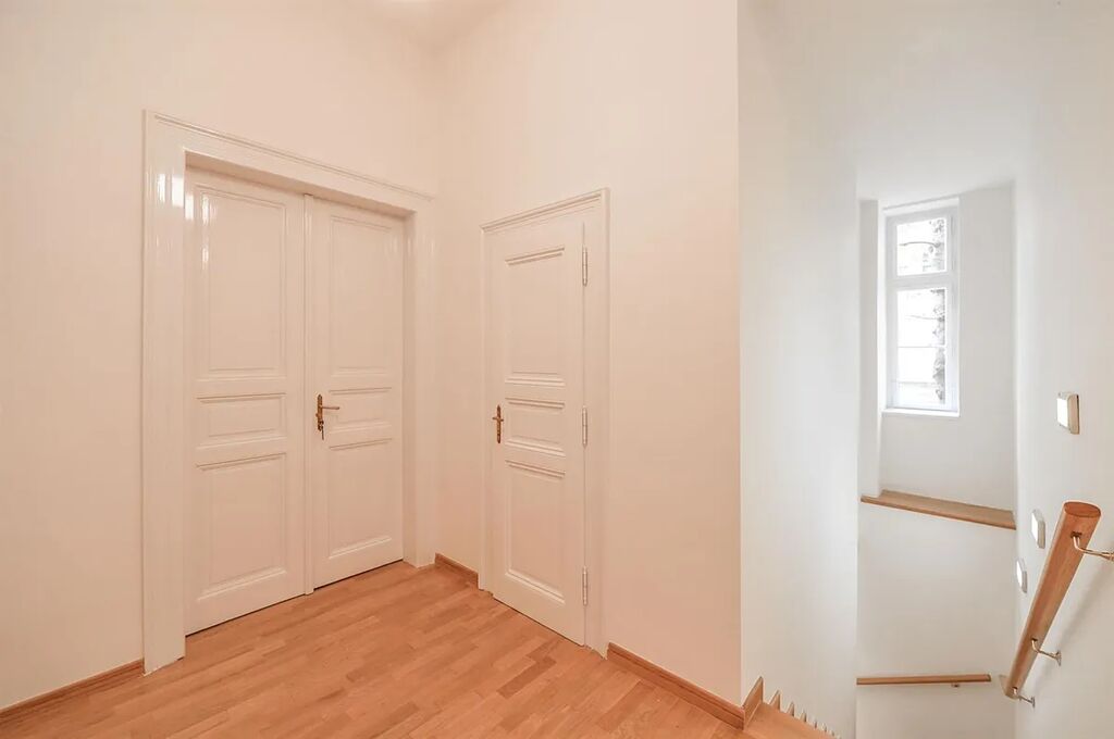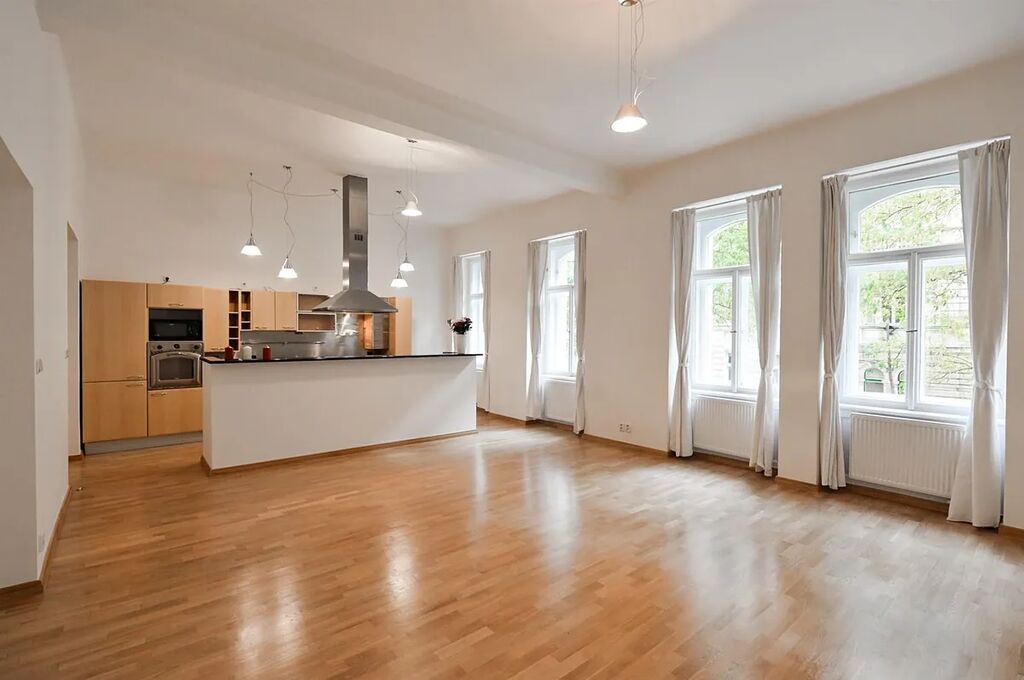 Nově zrekonstruovaný mezonetový byt 3+1 (2 ložnice, 2 koupelny), s balkónem, o celkové rozloze 118 m2, je situovaný ve 1. patře a v přízemí, rekonstruované rezidenční budovy s výtahem v populární lokalitě Praha 2 Vinohrady, v ulici Mánesova.
