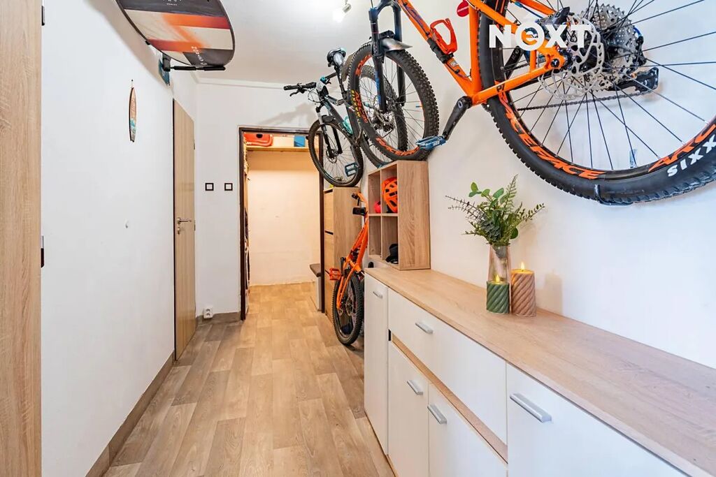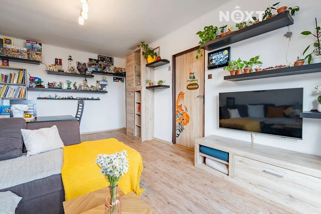 Dominantou bytu je prostorný obývací pokoj, ze kterého se vchází do ložnice a dětského pokoje. Díky velkému oknu s balkonovými dveřmi je místnost krásně prosvětlená. Balkon nabízí příjemné místo pro ranní kávu nebo malé městské zahradničení.