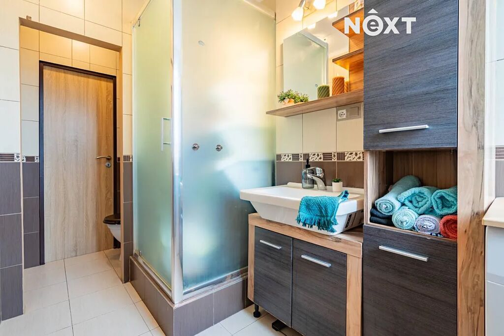Byt prošel před několika lety rekonstrukcí, při které byly vyměněny podlahové krytiny, kompletní elektroinstalace, rozvody vody, interiérové dveře a původní umakartové jádro bylo nahrazeno zděným. Úpravou dispozice vznikla prostorná koupelna se sprchovým koutem, místem pro pračku a oknem, které zajišťuje přirozené větrání. Součástí koupelny je také toaleta.