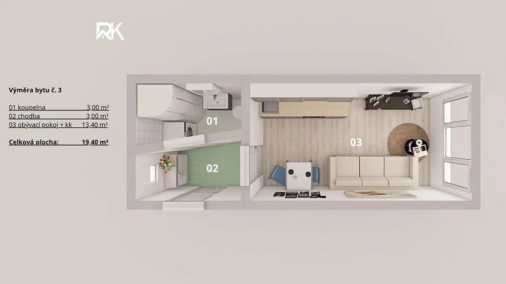 V horním patře se nachází světlý a vzdušný byt 3+kk o velikosti 100 m², jehož dominantou je terasa o 40 m² s krásným výhledem do zeleně. Je to ideální místo pro ranní kávu nebo večerní posezení s přáteli. K bytu náleží také přístup na půdu, která nabízí možnost vybudování další obytné plochy a rozšíření bytu podle vašich představ.