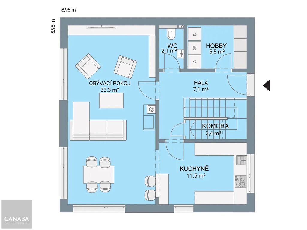 Vytápění bude řešeno plynovým kotlem.