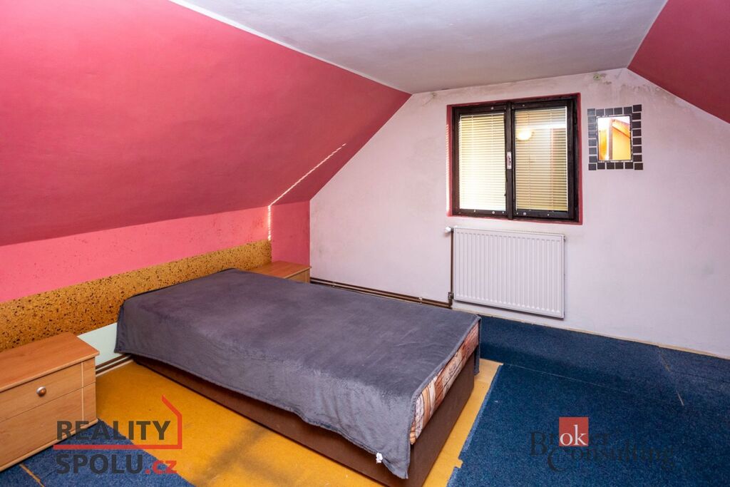 V patře se nacházejí dva pokoje v původním stavu a úložný prostor.