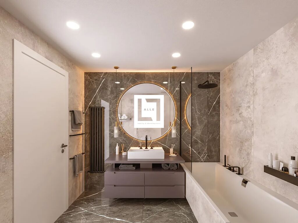V ceně standardního vybavení jsou kvalitní podlahy značky Egger, kompletní vybavení koupelny od koupelnového studia Ptáček s.r.o. a interiérové dveře Classen. Barevné provedení standardu na přání klienta.