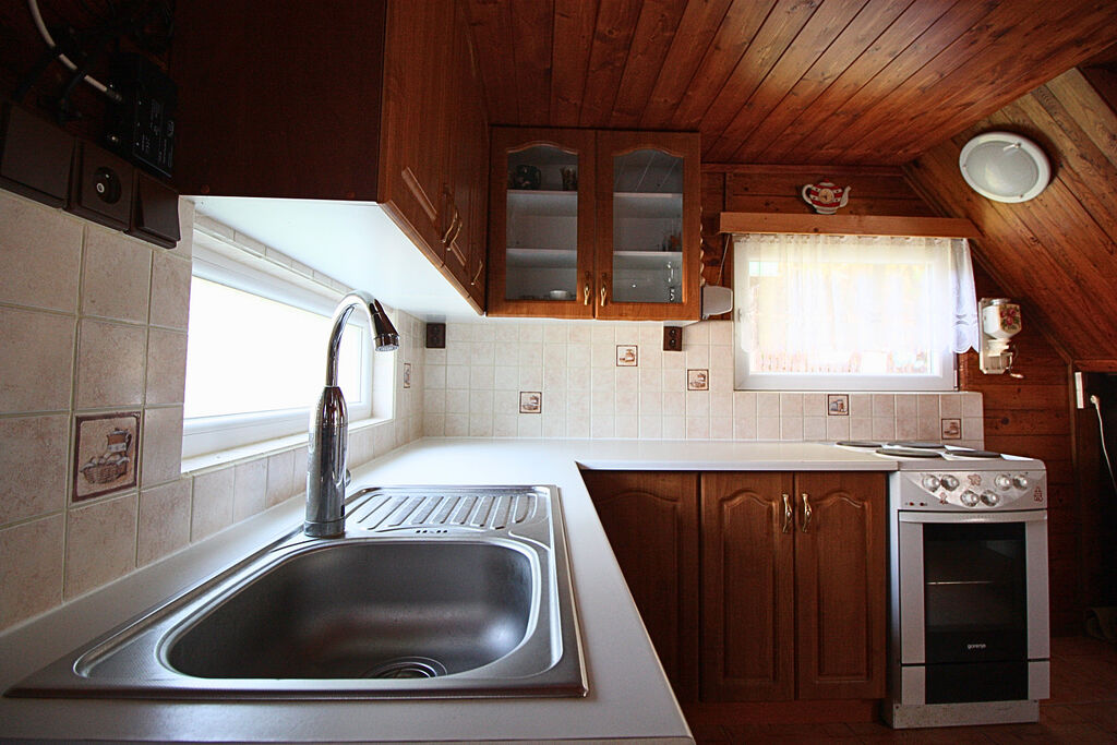 Samozřejmostí je septik a vrtaná studna 110 mm o hloubce 21m. Konstrukce chaty je dřevěná, vyplněná skleněnou vatou a izolací.