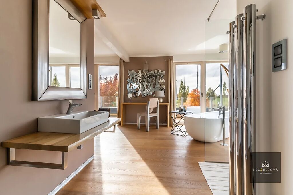 Exkluzivně nabízíme nadstandartní dvoupodlažní dům s krásnou zahradou, posezením, parkovacím stáním a domkem pro hosty přímo u golfového resortu Albatross. Dům je z přírodního kvalitního materiálu od rakouské firmy Griffner, kde v přízemí se nachází velká technická místnost, dále vstupní hala se schodištěm do patra a vstupem do obývacího pokoje s kuchyňským koutem na míru, a vstupem do zasklené zimní zahrady, kde můžete relaxovat při západu slunce. V patře je veliká ložnice s terasou, vanou a sprchovým koutem. Dále jsou na patře dvě další ložnice, koupelna a šatna. V obci je školka, škola, obchod, pošta a vyhlášená Italská restaurace Locale Ristorante. Více informací Vám rád sdělím po telefonu nebo na prohlídce, kde můžete nasát atmosféru tohoto krásného domu a okolí.