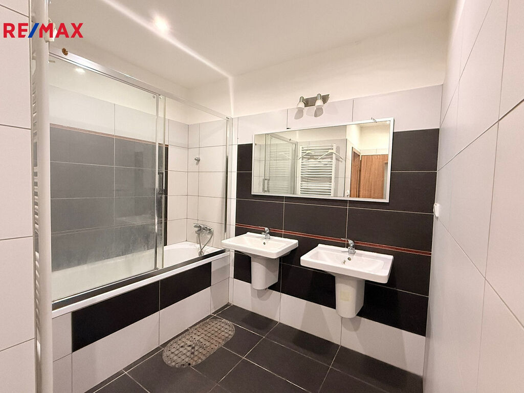 - koupelna s vanou, dvěma umyvadly a přípravou na pračku a sušičku