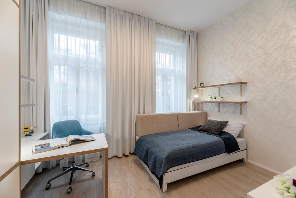 Objekt je střežen kamerovým systémem. Servisní podpora je zajištěna Správou Living Apartments.