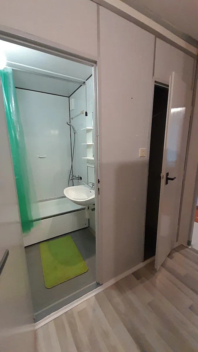 Vybaven základní šatní skříní, pračkou, vařič, stolek se židlema, rozkládací sedačka.