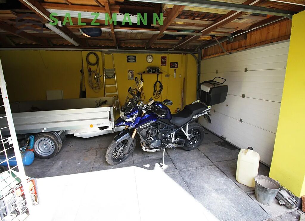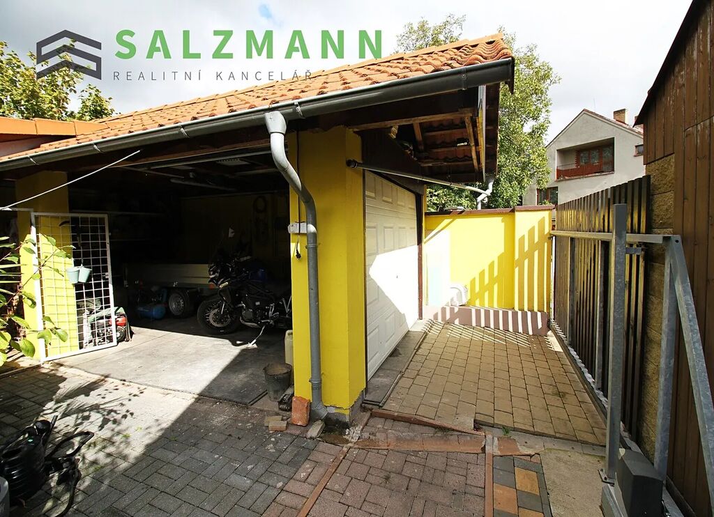 Součástí pozemku je malá oplocená zahrada se zastřešenou terasou, zahradním domkem s garáží. Vjezd na pozemek do garáže automatickou bránou. Celá nemovitost je střežena alarmem.