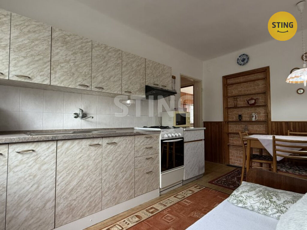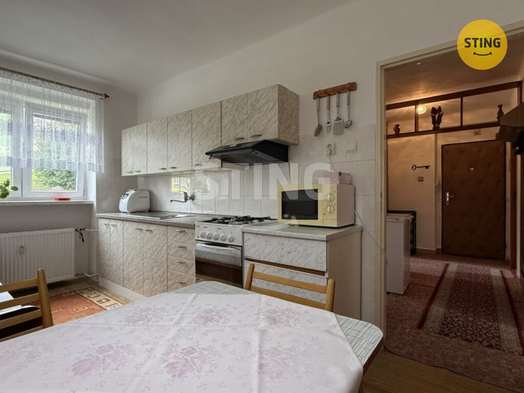 pronájem bytu o dispozici 2+1 a celkové výměře 53 m2, který se nachází v 1. vyvýšeném patře cihlového bytového domu v klidné části města Břidličná, na ulici 1. máje.