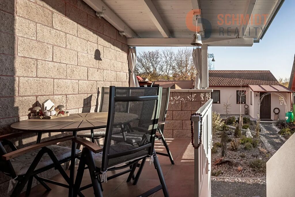 Součástí nemovitosti je také pergola a zahradní domek, který lze plnohodnotně využívat jako samostatná obytná jednotka.