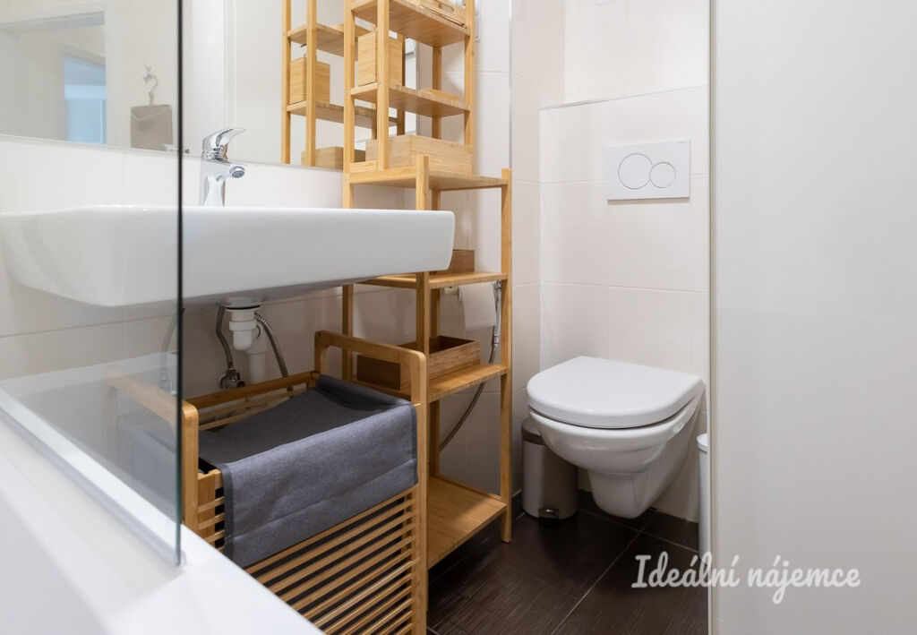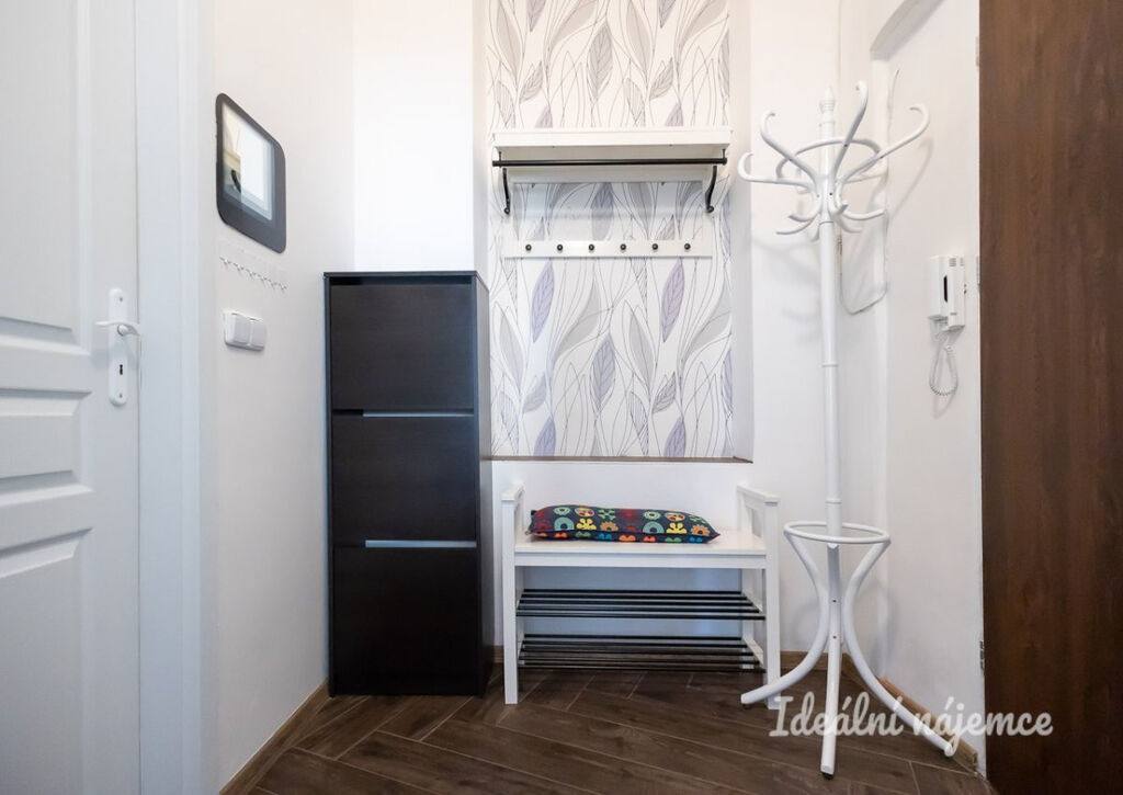 Byt se nabízí plně vybavený. Kuchyňský kout disponuje všemi potřebnými spotřebiči (lednice, myčka, elektrická trouba, indukční varná deska, mikrovlnná trouba, pračka). Obývací část je zařízena jídelním stolem se 4 židlemi, pohovkou, TV stolkem s televizí a křeslem. Součástí ložnice je postel s matrací, komoda, skříň a knihovna. V koupelně je vana, umyvadlo, koupelnová skříňka, zrcadlo a WC. V předsíni jsou 2 botníky, skříň, police a věšák. Vchod do bytu je zajištěn bezpečnostními dveřmi a byt je vybaven mobilní klimatizací.